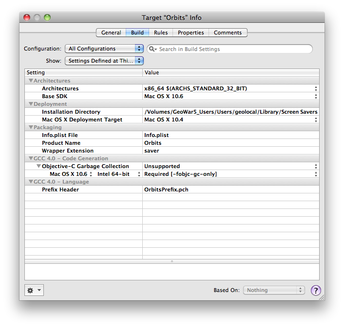 Перечисление 1 Проект XCode или Настройки Target, необходимые для Экранных заставок Snow Leopard