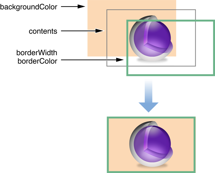 Изображение, которое Вы присваиваете уровню, должно быть a CGImageRef ввести. (В OS X v10.6 и позже, можно также присвоиться NSImage объект.) При присвоении изображений, не забудьте обеспечивать изображение, разрешение которого соответствует разрешение собственного устройства. Для устройств с дисплеями Сетчатки это могло бы также потребовать, чтобы Вы корректировались contentsScale свойство изображения. Для получения информации об использовании содержания с высокой разрешающей способностью с Вашими уровнями посмотрите Работу с Изображениями С высокой разрешающей способностью.